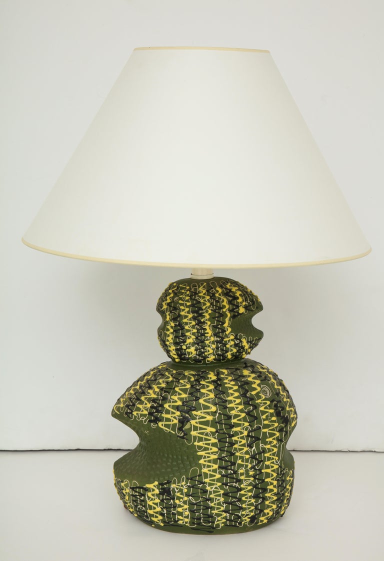 Mitte Des Jahrhundert Italienische Grune Und Gelbe Keramik Tischleuchte