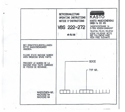 Bedienungsanl Schaltplan Und Ersatzteilliste Fur Kasto Vbs